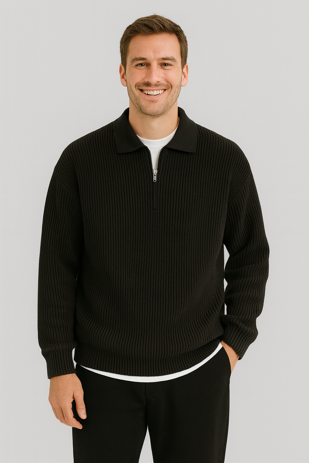 Stay effortlessly polished with the Emeric Contemporary Slim-Fit Quarter-Zip Sweater, designed to combine modern tailoring with everyday versatility. Its sleek zip collar and slim profile create a sophisticated look that transitions seamlessly from office hours to casual evenings.